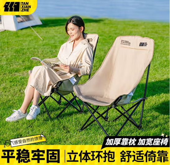 • TANXIANZHE探险者月亮椅户外折叠椅露营椅子便携式钓鱼凳野餐高背躺椅沙滩椅