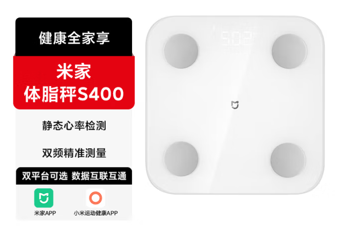 米家(MIJIA)小米智能体脂秤S400 白色 双接家用电子秤体重秤高精准25项身体数据平衡测试 塑形减脂 体重管理