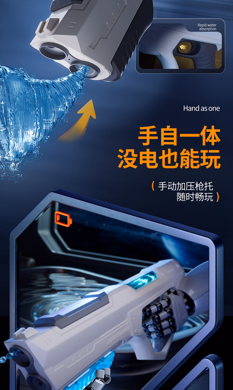 • 活石(LIVING STONES)儿童电动水枪戏水玩具高压全自动吸水8-12岁神器手自一体滋大水枪
