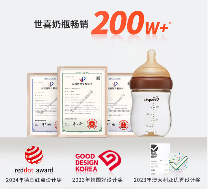 世喜新生儿防胀气奶瓶0-6个月以上玻璃婴儿仿母乳奶嘴(160ml+240ml)