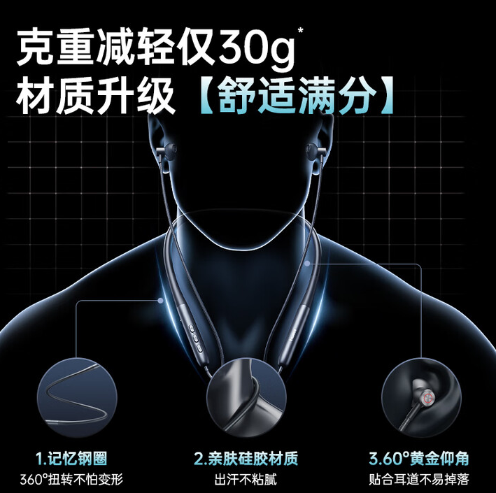 • 倍思P1升级版颈挂式蓝牙耳机超长续航运动音乐跑步手机耳机适用苹果华为vivo荣耀OPPO手机