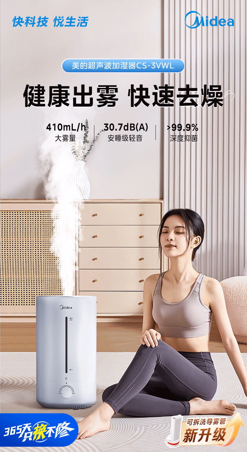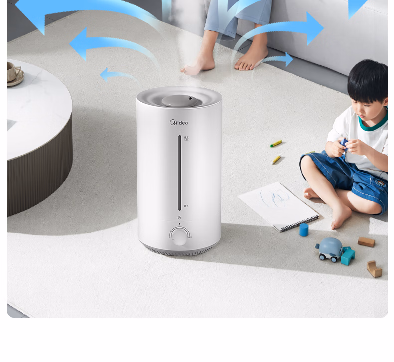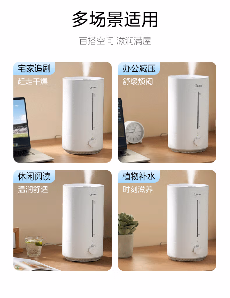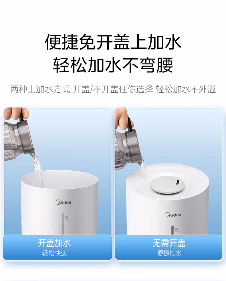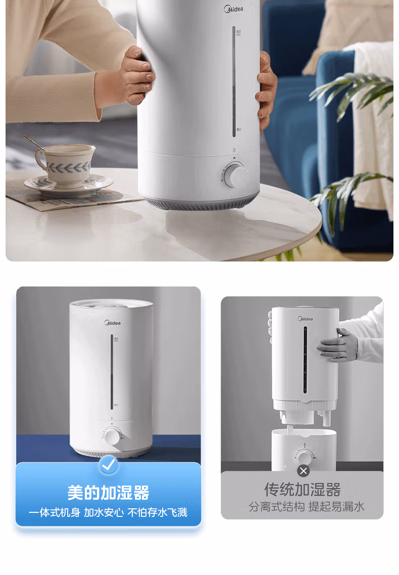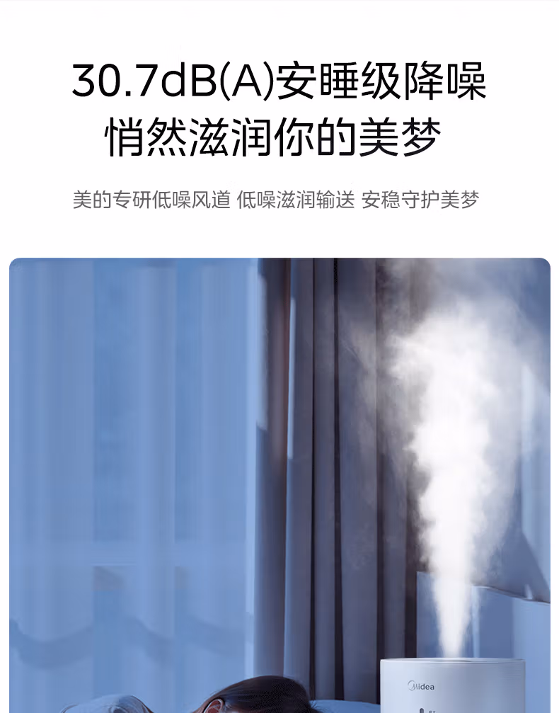 美的(Midea)空气加湿器家用卧室母婴幼儿鼻炎静音抗菌超大雾量取暖补水小型工业喷雾雾化器礼物国家补贴3VWL