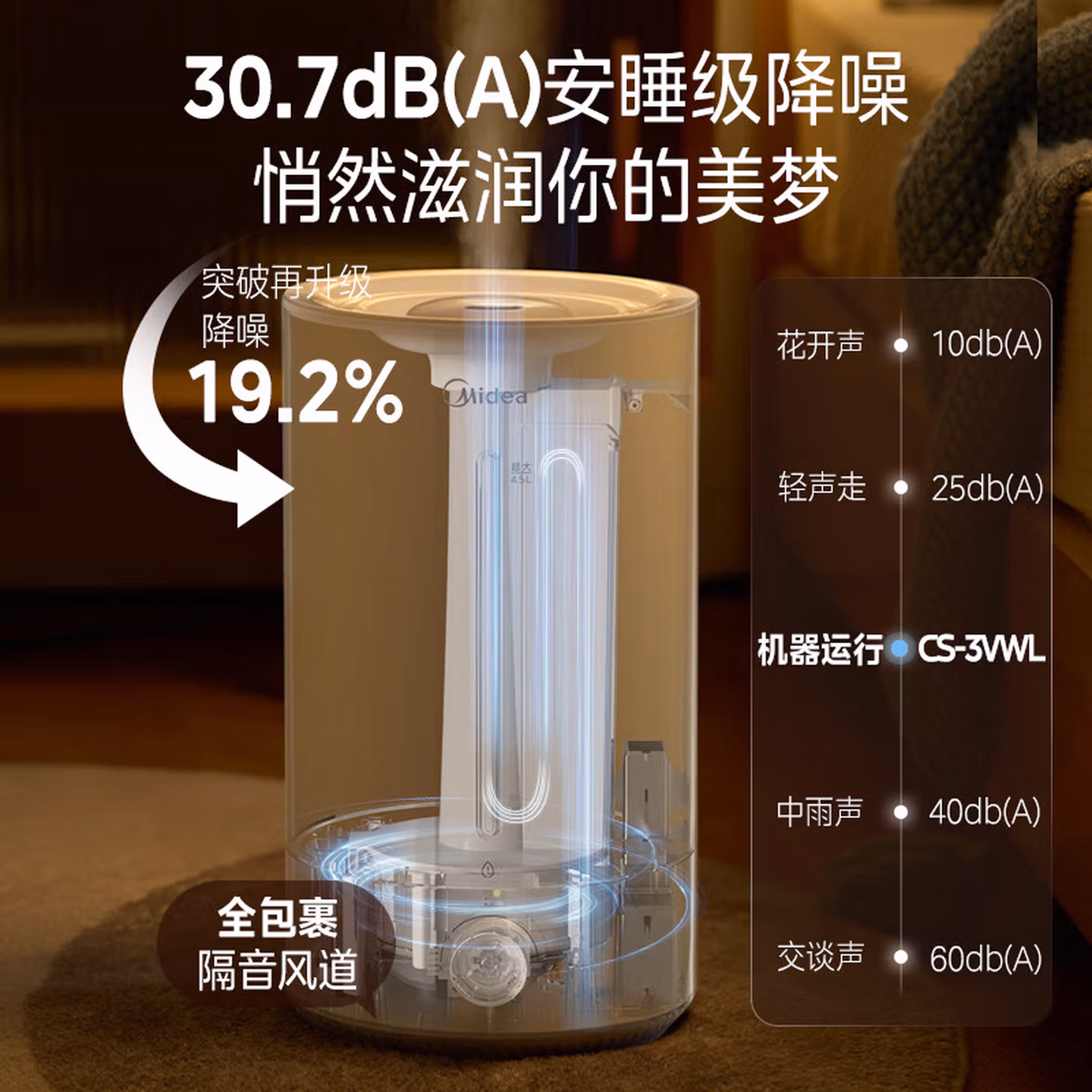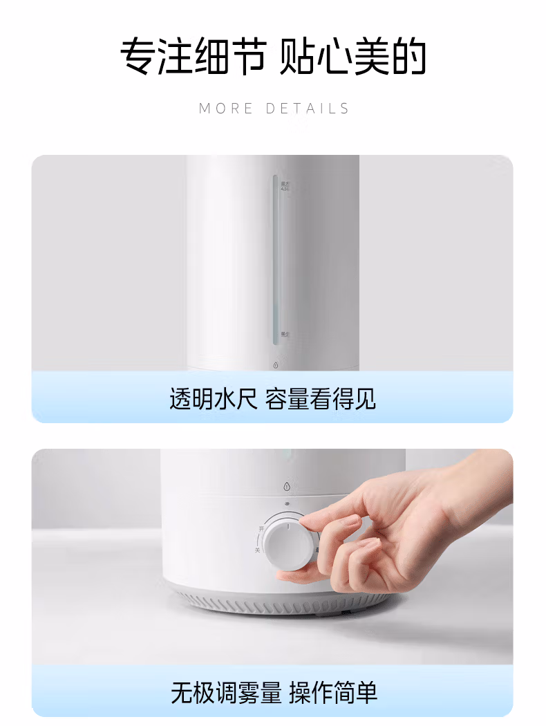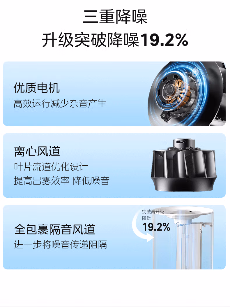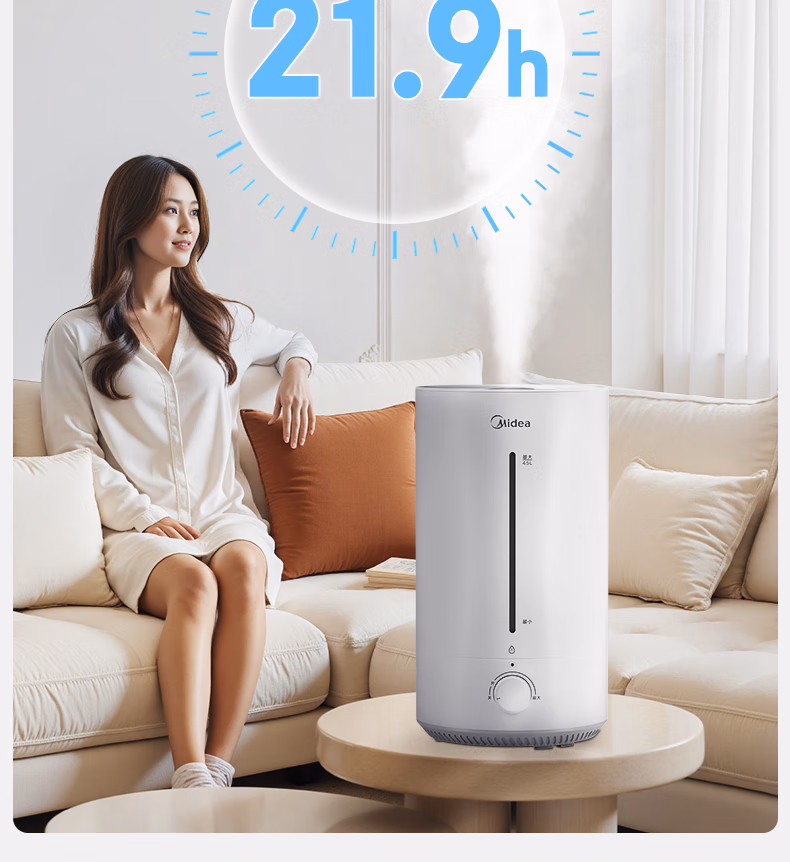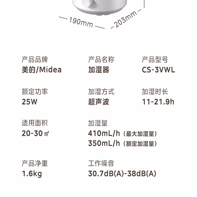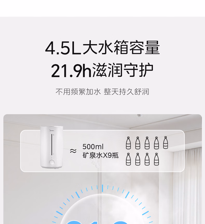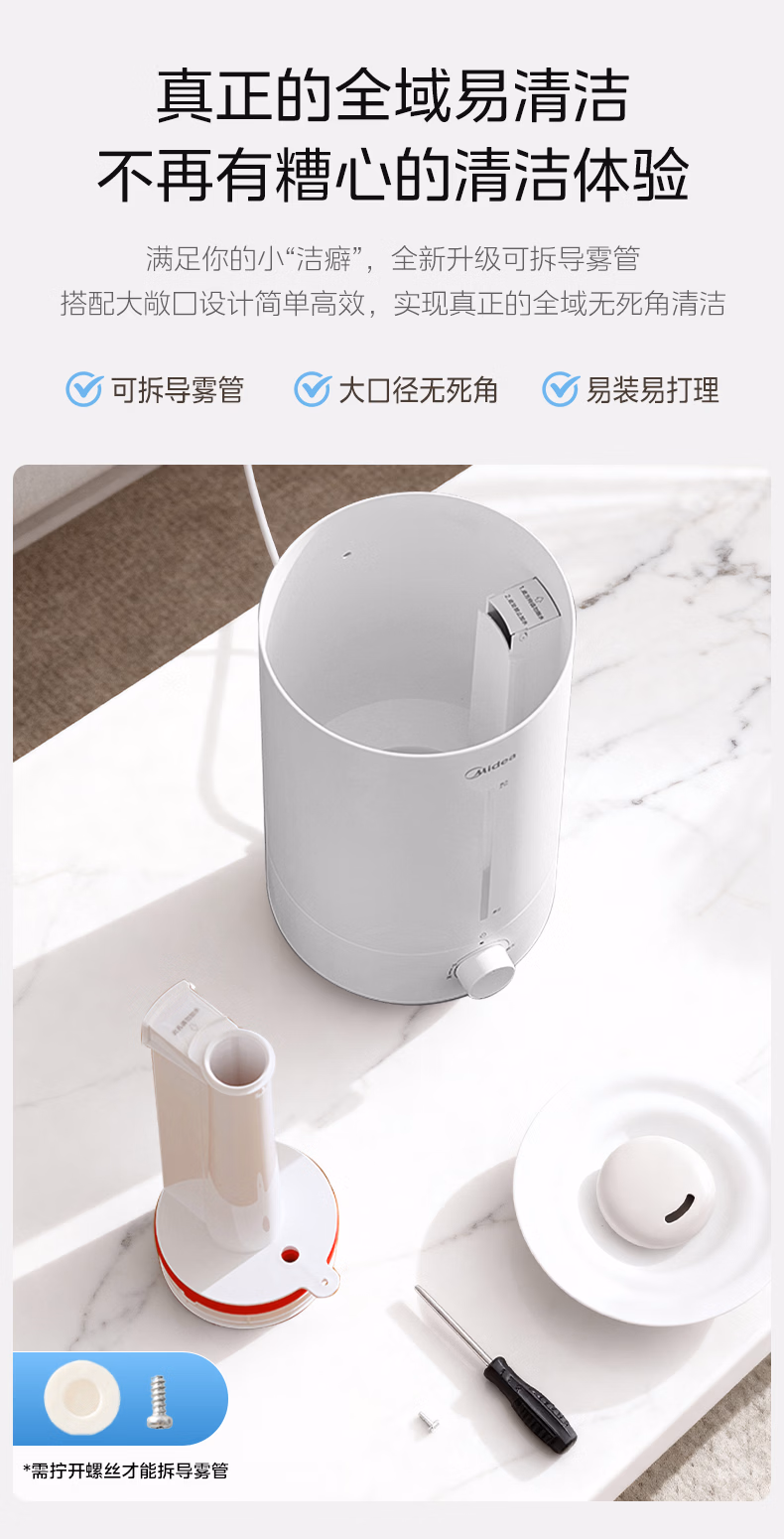 美的(Midea)空气加湿器家用卧室母婴幼儿鼻炎静音抗菌超大雾量取暖补水小型工业喷雾雾化器礼物国家补贴3VWL