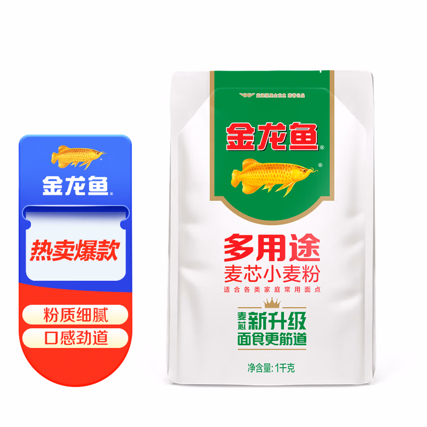 金龙鱼 面粉 中筋粉 多用途麦芯小麦粉 2斤 包子饺子馒头饼手擀面