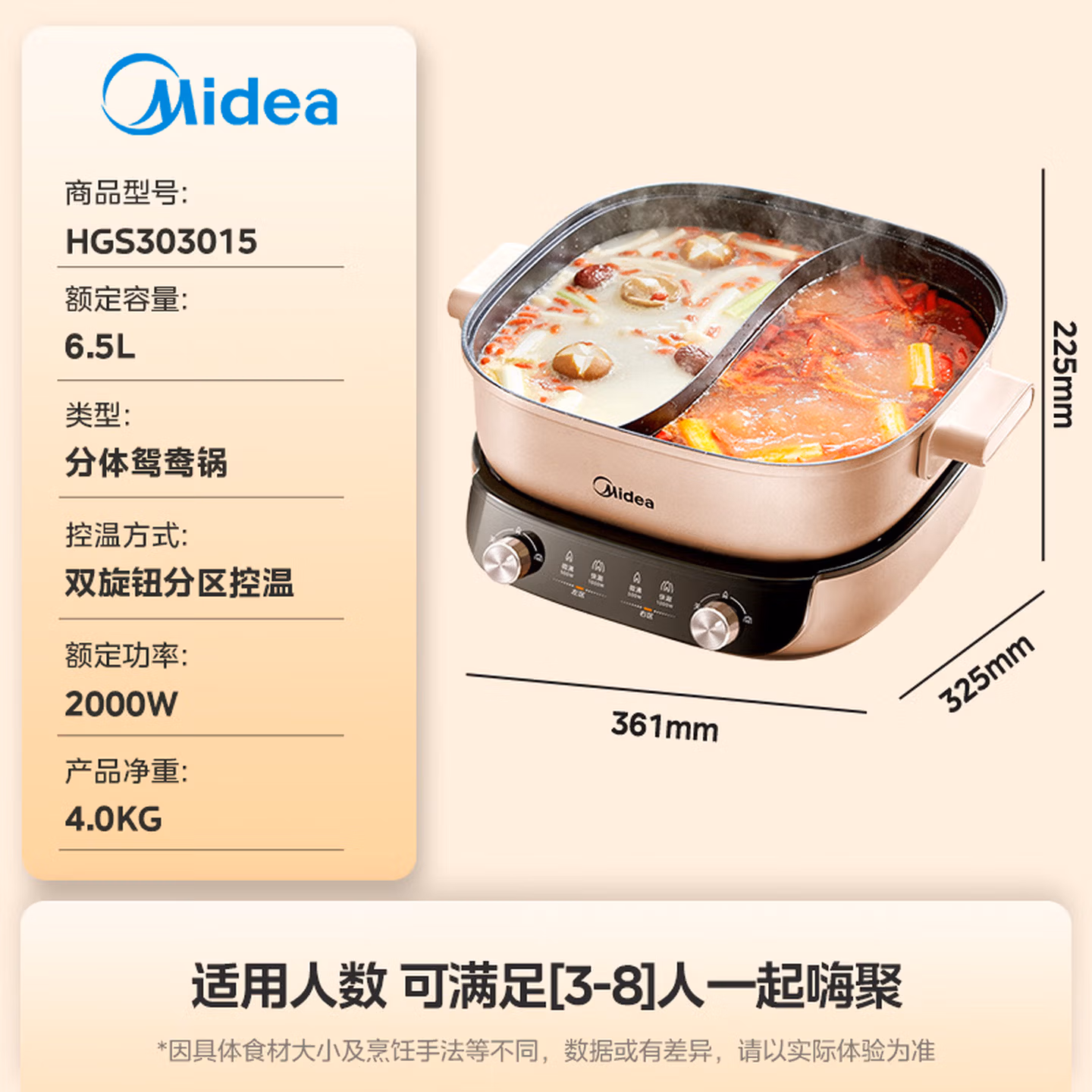 • 美的(Midea)电火锅鸳鸯锅火锅 HGS303015