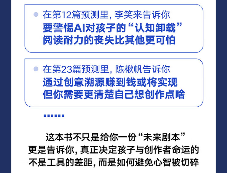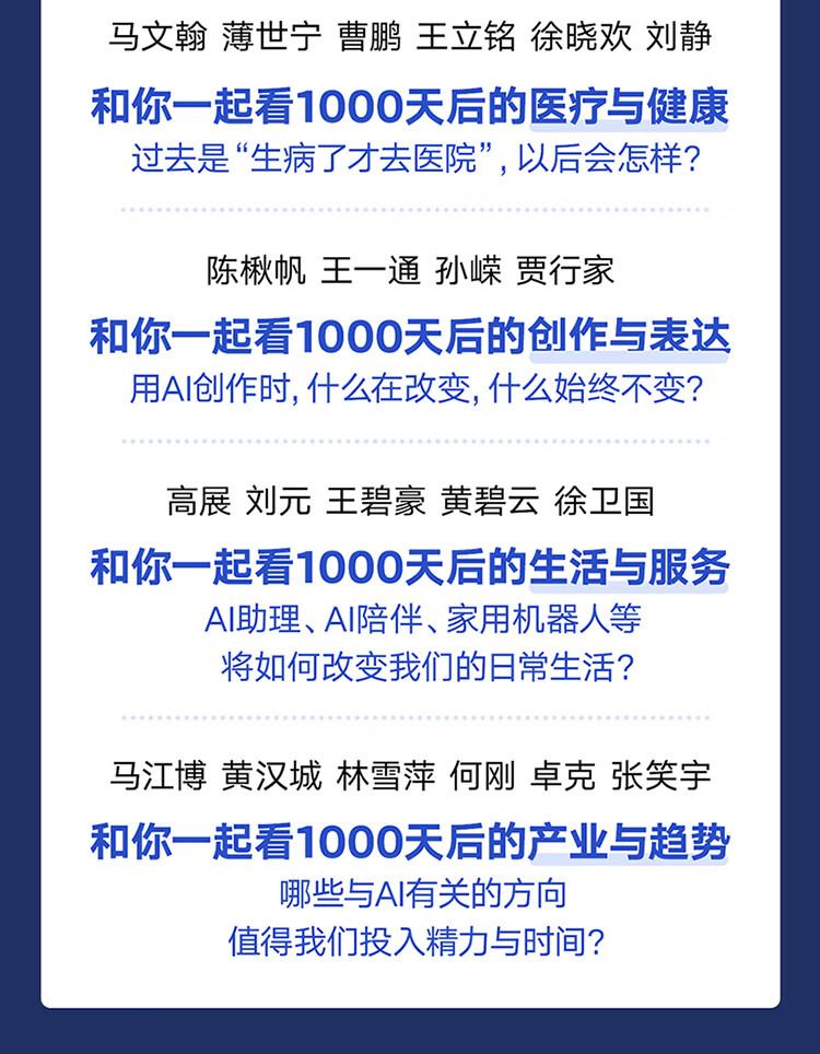 此刻,我们都能感到AI带来的变化在加速,却很难说清1000天后它会把世界推向何处。这本书为你提供了一个特殊的观察位置,去看那些已经在酝酿、极有可能到来的趋势,从而提前做准备、做选择。罗振宇邀请37位行动者和实干家,把今天的线索,拼成了明天的答案——