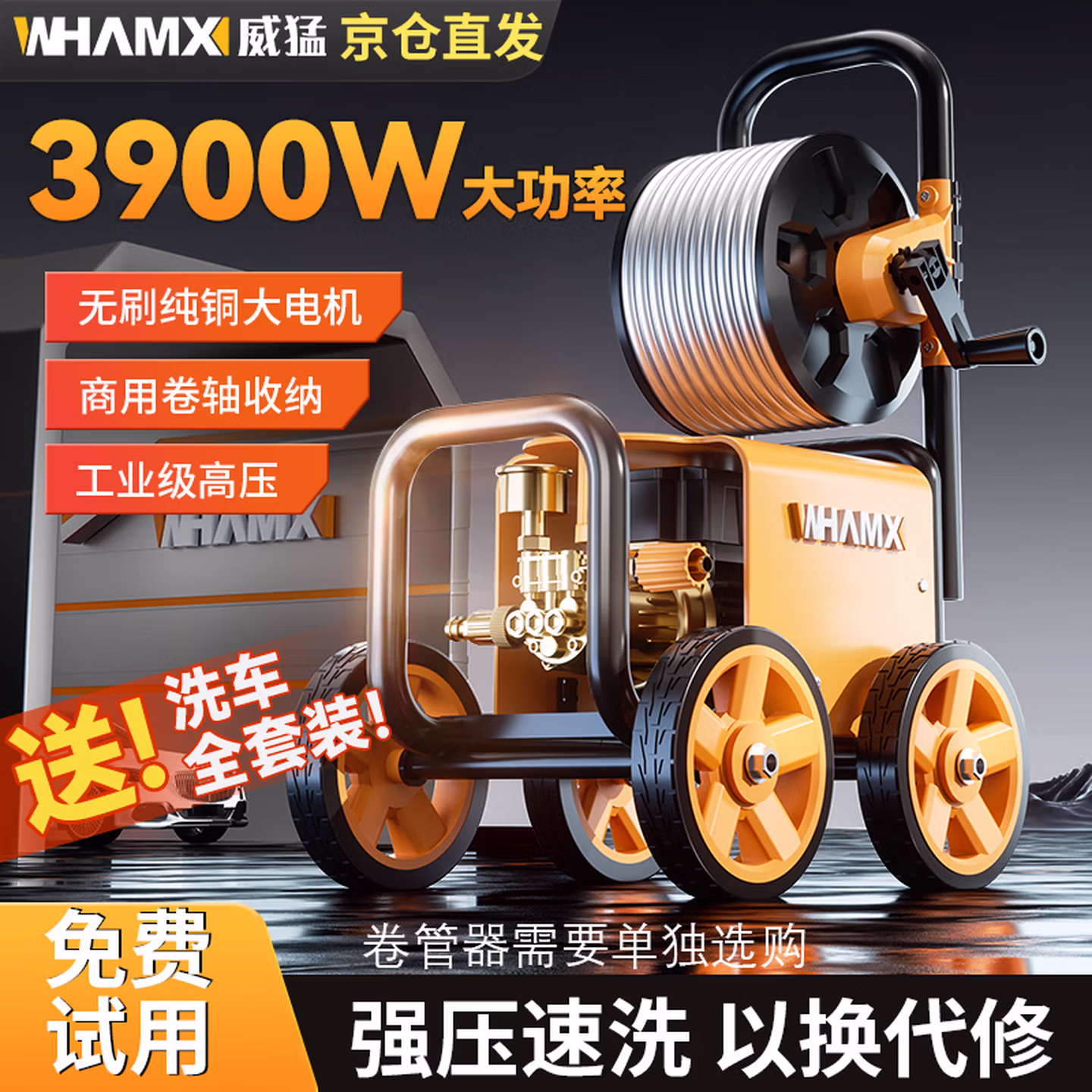 • 威猛洗车机商用高压水枪220V家庭清洗3900W极压推车款+10米管+长水枪