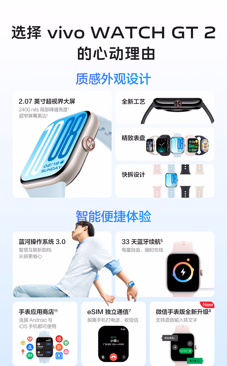 • 名称vivo WATCH GT 2 原点黑 超窄边高亮大屏 照片表盘一碰换 33天蓝牙续航 智能手表 情侣手表 送女友